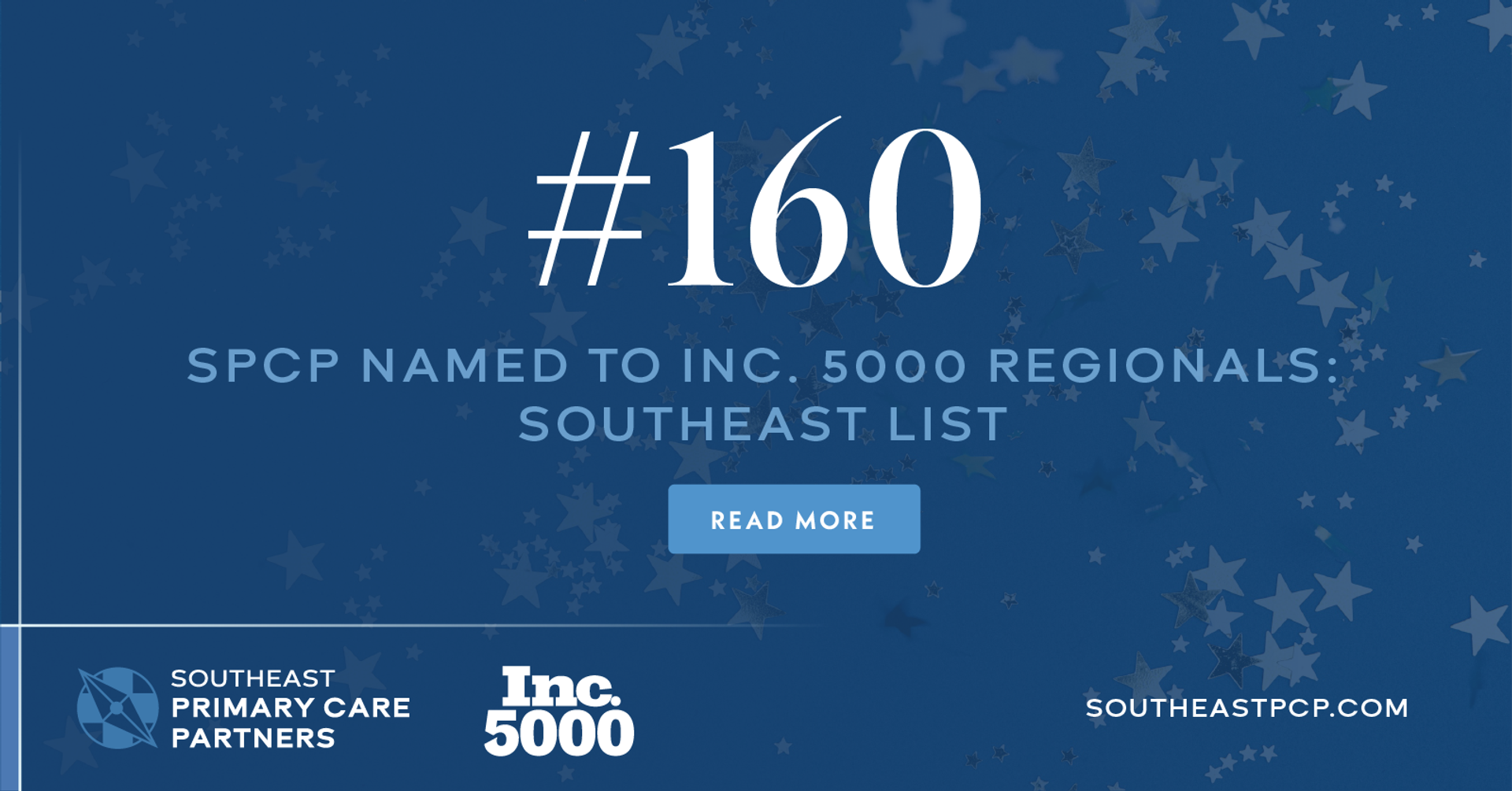 Inc. magazine today revealed that Southeast Primary Care Partners (SPCP) is No. 160 on its fourth annual Inc. 5000 Regionals: Southeast list, the most prestigious ranking of the fastest-growing Southeast private companies, based in South Carolina, Kentucky, Tennessee, Georgia, Arkansas, Alabama, Mississippi, Louisiana, Florida, and Puerto Rico.